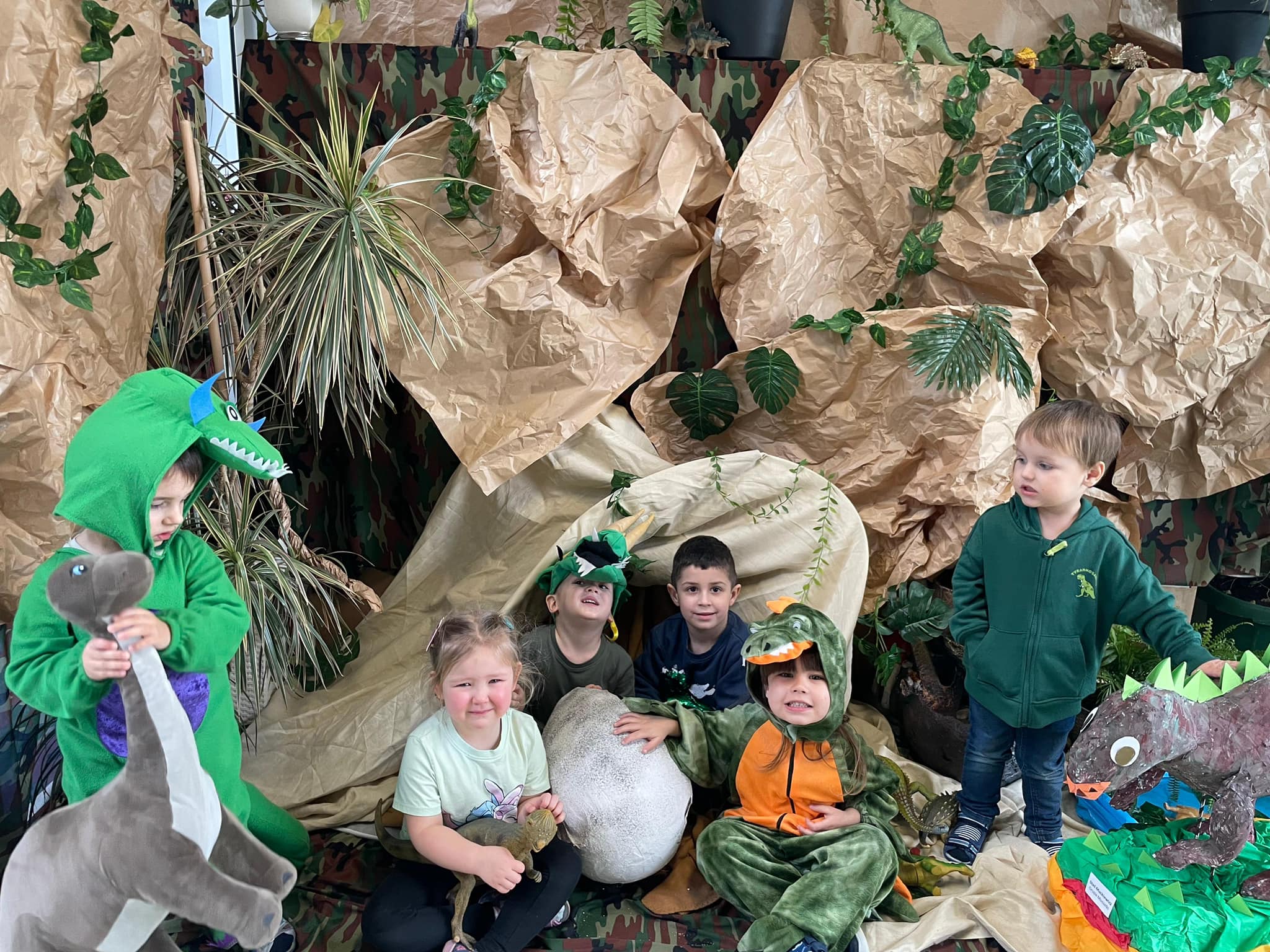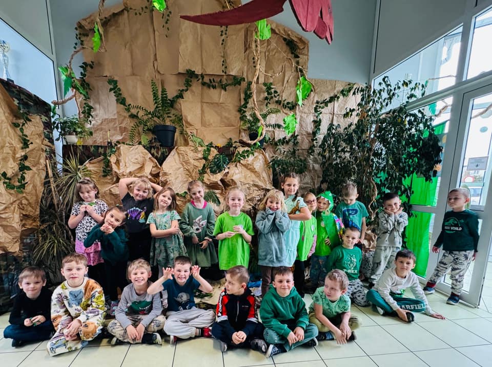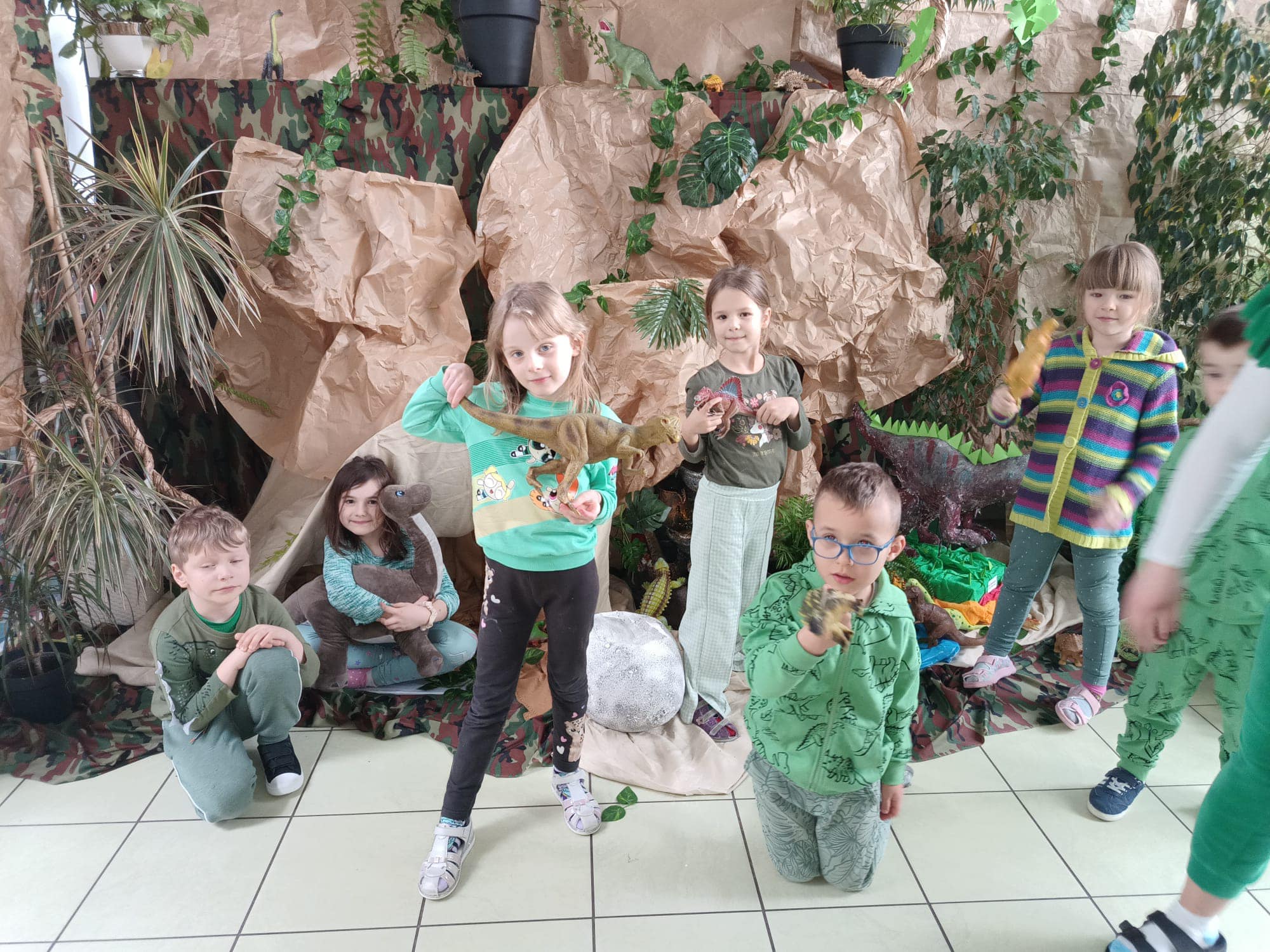 Dnia 26 lutego 2025r. całe nasze przedszkole przeniosło się w prehistoryczny świat! . Sale i hol przedszkolny zamieniły się w prawdziwą krainę dinozaurów – pełną kolorowych dekoracji, przestrzennych dinozaurów wykonanych wspólnie przez dzieci i rodziców. oraz mnóstwa kreatywnej zabawy! .