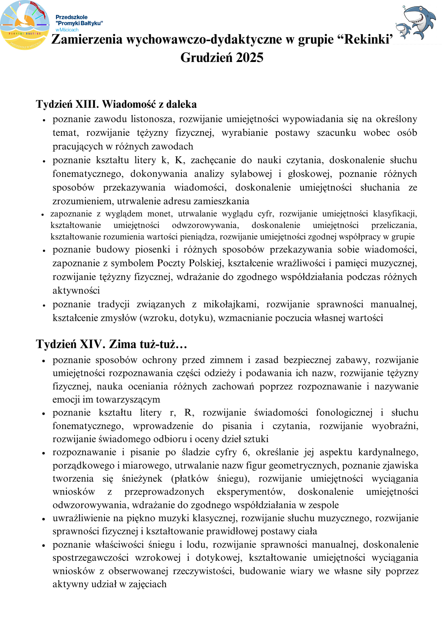KADRA PRZEDSZKOLA ''PROMYKI BAŁTYKU'' W MŚCICACH